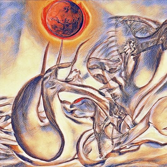 Mars. Mixed technics on canvas 45 x 45 cm by Shaharee Vyaas (2023). Collection Civilization and Cosmos part 5(Cato, de Agricultura, CXLI)