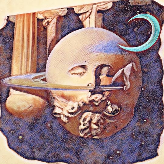 Saturn. Mixed technics on canvas 45 x 45 cm by Shaharee Vyaas (2023). Collection Civilization and Cosmos part 8Saturn´s children