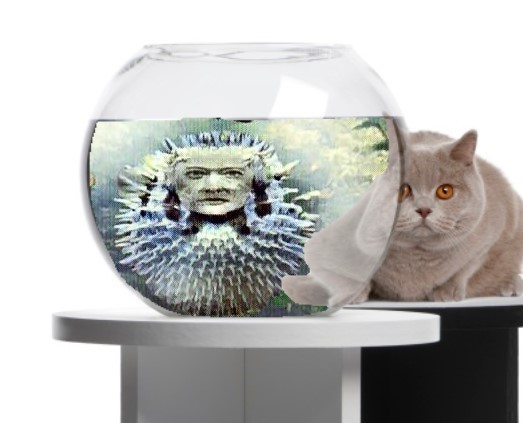 The first image that popped into my head was the goldfish in a bocal that figures prominently in Monty Python’s “The Meaning of life”, so it’s not astonishingly that the first thing I came up with looked like this: