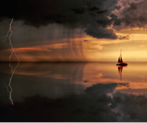 crashing waves wrapped in a darkness lit only by lightning. In the storm it was