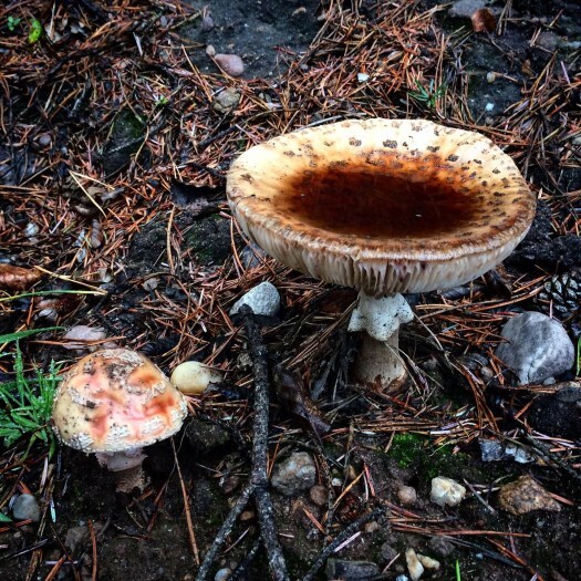 I’m walking through that hot afternoon sunshine, between the trees and the toadstools. There’s so many of those this year.