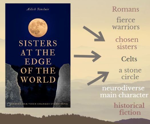 Set in 1st century Scotland, SISTERS AT THE EDGE OF THE WORLD includes the battle of Mons Graupius between the Romans and the Caledonian tribes, a neurodiverse main character, and some rather complicated romance.