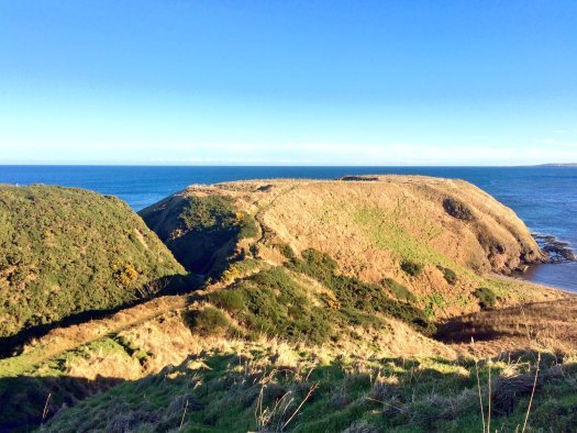 From the promontory you can see the Deil’s Lum (meaning devil’s chimney), a cave which is also sometimes called Hell’s Lum. It shoots sea spray with a roar during stormy weather.