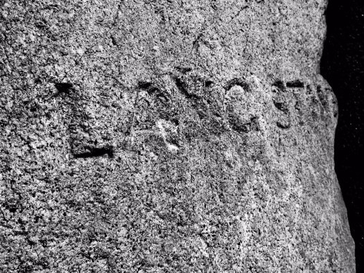 Who carved the words on it, or when, I don’t know. But it was very naughty. There is also a faint six-pointed star just below the text, which is interesting but still desecration.