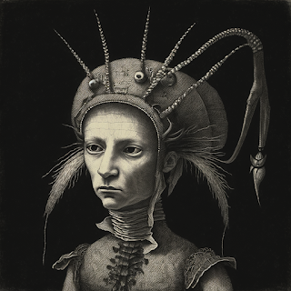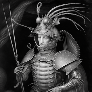 Theo (whom I play with in noisms' Three Mile Tree campaign, and whose weird and wonderful updates on that campaign always bring a smile to my face) spoke in the comments of how the four characters are the personifications of anthropomorphized walled cities in some liminal Goetiaverse, competing in beflowered tournaments for the favor of the Lich Queen Callisto Meffit.