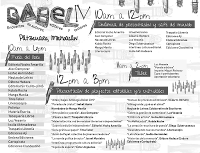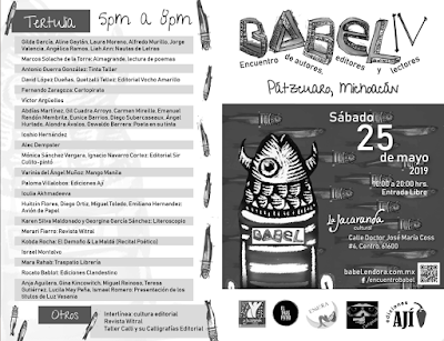 El sábado 25 de mayo (2019) tuvo lugar el IV Encuentro BABEL en la ciudad de Pátzcuaro, Michoacán. Yo (Kobda Rocha) fui invitado por parte de ENd0RA Ediciones. Confieso que, aunque uno siente alegría de estar allí, me sentí intimidado por dos grandes fuerzas literarias: 1) los escritores [vivos] con quienes me habría de encontrar en el evento, y 2) los escritores [muertos] a quienes tendría que hacer honor, estando al nivel de su talento. Si lo logré o no, es un juicio que deberán hacer los críticos y literatos; para quien guste criticar y/o comparar, dejo aquí dos poemas maravillosos nacidos en Pátzcuaro.