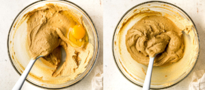 STEP THREE: Add in the eggs, one at a time, making sure the first is well blended before adding the second.