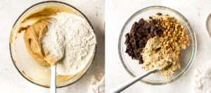 STEP SEVEN: Mix in the chocolate and peanuts, stirring until just combined and evenly mixed throughout the cookie dough.