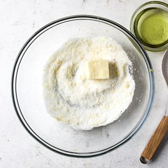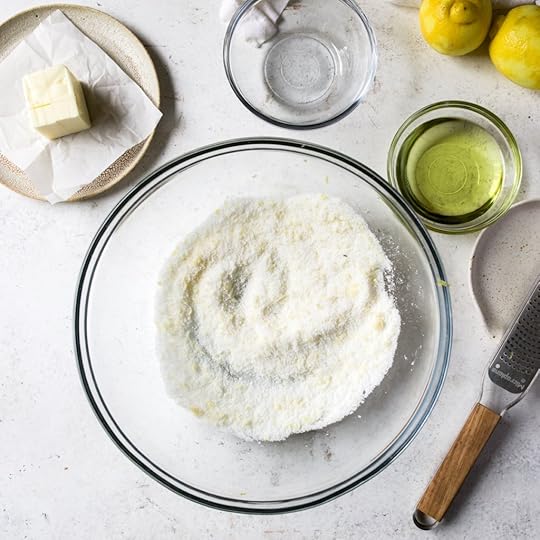 STEP TWO: Massage the lemon zest with the granulated sugar…
