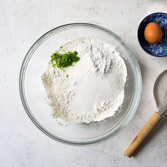 STEP TWO: Whisk together the flours, sugar, baking powder, salt, cinnamon and lime zest.