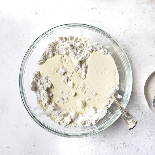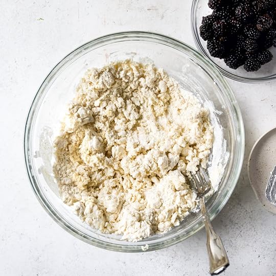 STEP FOUR: Drizzle the buttermilk over the top of the dough and use a fork to gently, and just barely, mix until a shaggy dough forms.