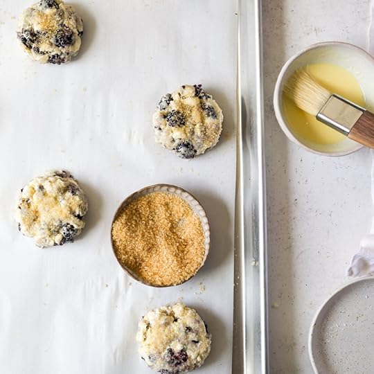 , and give them a generous sprinkle of glistening Demerara sugar, granulated sugar or sparkling sugar (if using) for that amazing crunchy top. Bake them in the center of your oven for about 16 to 17 minutes. When they're done, they’ll be beautifully lightly golden brown around the edges and wonderfully golden over the tops. Do a quick check around the blackberries to ensure those areas are baked through too. Let these beauties cool on the baking sheet, in a draft-free area, for about 15 minutes before carefully transferring them to a wire rack to finish cooling completely. While the scones cool, whip up any glaze if you're using (see