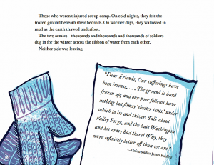 We’re having a last blast of winter in Maryland today, and as I look out at the still-bare trees bending in the wind gusts, I’m thinking of the hardships of soldiers. My newest nonfiction book, Soldier Song, is about soldiers of the North and South in the U.S. Civil War, during and after the Battle of Fredericksburg in December 1862. It tells the true story of an impromptu concert after the battle, when the two sides were camped across the narrow ribbon of the Rappahannock River from each other.