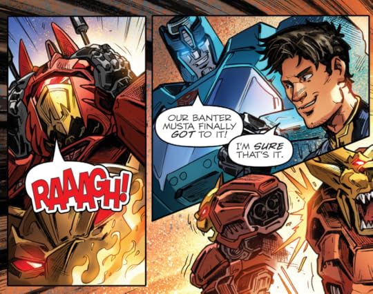 But there’s also Swerve, a wannabe bartender obsessed with Earth sitcoms. There’s Brainstorm, the cheery mad scientist; there’s the constant fun of Ultra Magnus, Duly Appointed Enforcer of the Tyrest Accord and resident lawman, butting heads with the pathologically lassez-faire Hot Rod; there’s Ratchet, the grumpy doctor, Nautica, the awkward quantum mechanic, and so many more. There is as much humour as there is trauma, as these broken people begin to make sense of a world where they don’t have to fight any more.