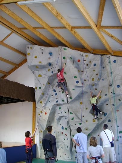 Here is little(r) me climbing in apparently 2007.But now I’m bouldering (i.e. no ropes, because they are expensive) on a regular basis. London sadly being lacking in actual rock faces, my usual haunt is an indoor wall, but it’s built into an old theatre and so fits a surprising amount of vertical space. I’ve been going for about 6 months now. I’m not good yet. But I’m getting better. And so I’m starting to appreciate exactly what goes into climbing in a way that I didn’t before. I know better how it feels to reach for that next hold, how satisfying it is to solve the puzzle of a tricky route. I know which bits hurt afterwards. I have felt the physical caesura as I lose my grip, in the instant before I fall.