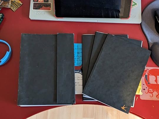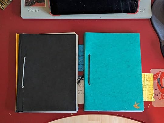 They won’t stay there forever. They will, in fact, be rather useful if and when I ever get around to revising versions of those unpublished works – it’s nice to have an actual book to read when considering how to rewrite them. They’ll need rewriting, a lot of it. I’m a very different writer now to the one I was a decade ago. But they will always be reminders of where I started.