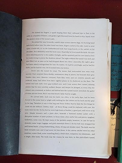 Once I was finished, I wanted to see the damn thing. It’s a brick, at almost 200,000 words, and it was the first full-length story I’d ever set down. I remember writing fight scenes on the train to my first Edinburgh Fringe, I remember sitting at my weirdly long desk in my student halls and typing away for hours. And when I was done, I went to the library, and took advantage of those delicious free print credits. You got lots of those, for essays and such, but even a humanities degree barely made a dent in my allowance (thank you, iPad, for storing so many seminar readings and sources). 200,000 words made many hundreds of pages.