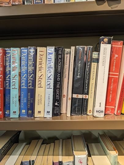 I wonder if they’ll stumble across me. For, dear reader, I have managed to get a book into the library. No longer my local library, Archway Library in north London was nice enough to take The Blackbird and the Ghost way back in 2019 and actually shelve it. (Unlike my current local library, which, while excellent, took my books for review over a year ago and refuses to answer any of my emails.) Despite still working nearby I haven’t visited Archway Library in years, as it’s frustratingly open only when I am actually at work. But I popped by the other day. I saw Blackbird on the shelves in person for the first time. (I knew it was there from the catalogue, I just hadn’t laid eyes on it.) Tucked in next to Danielle Steel, ready to be read.
