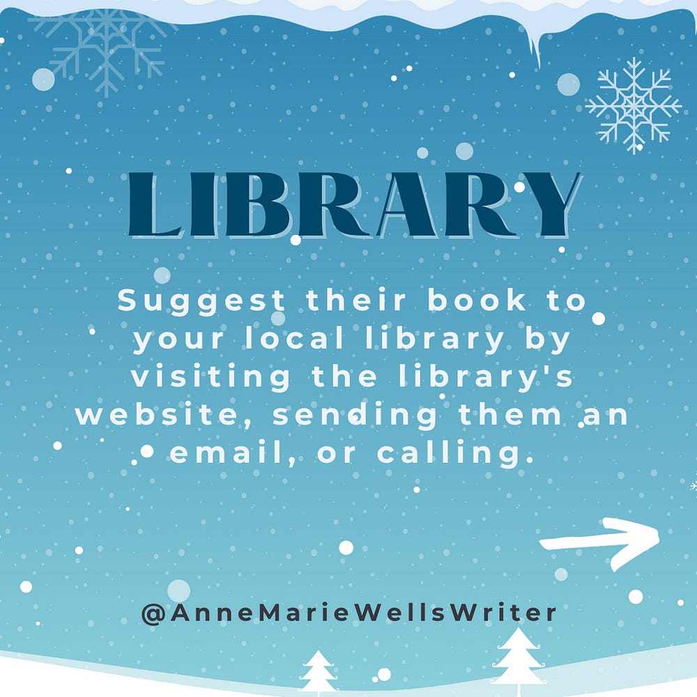 Additionally, once a book has been purchased for the library, this opens the door for the author to be able to work with that library in order to host a reading or writing workshop.