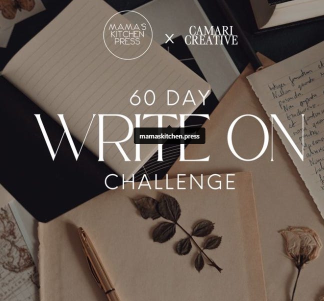 Last month I wrote how I was participating in Camari Hawkins’ / Mama’s Kitchen Press’ 60-Day Writing Challenge.