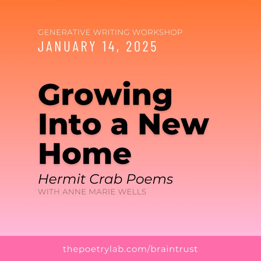 If you’d like to do a little “tester” before committing to becoming a paid subscriber, you can submit a poem for feedback through my website first. Same price without the commitment of a month-to-month subscription.