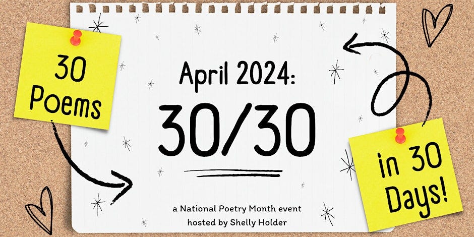 I participated in Shelly Holder’s 30/30 class again this year, and although I only ended up writing one poem, I’m choosing to still see this as a WIN.