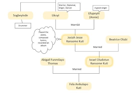 While searching for the Delano’s books, I found a biographical book he wrote about Fela Anikulapo Kuti’s grandfather. The book is titled “The Singing Minister of Nigeria: The life of The Rev. Canon J.J. Ransome Kuti” by Isaac Delano. The book was published in 1942 and was written in English. Delano provided some insight about Fela Anikulapo Kuti’s ancestors. From the book, I gathered the information that help me to construct Fela Anikulapo Kuti’s family tree. It is not exhaustive as I left out his siblings and focus on that part of his ancestry that gave some context to his musical genius: