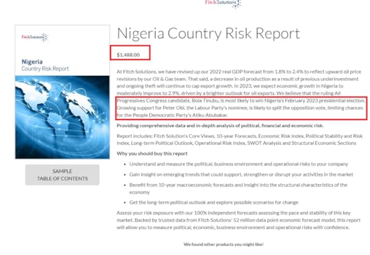 Fitch Solutions has released a report on Nigeria, which will set you back 1,488 dollars: