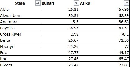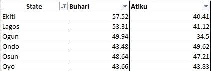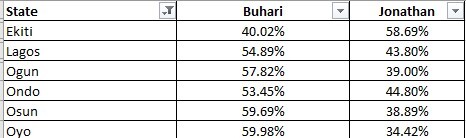 The APC was in place as a political force in 2015. Apart from Ekiti state where Buhari polled 40%, the APC won the South West states with a percentage of between 53 and just under 60%: