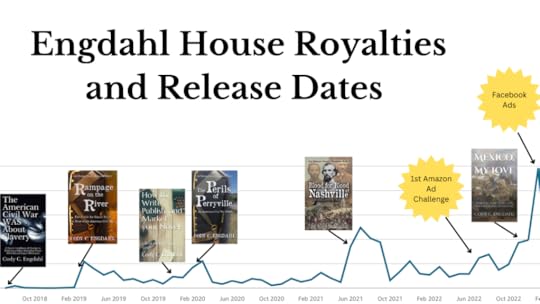 There’s a little bump from my writing book and then a spike when I released The Perils of Perryville. That came out in 2020 just as the pandemic shut everything done. After a few good months, things plummeted back to where they were before.