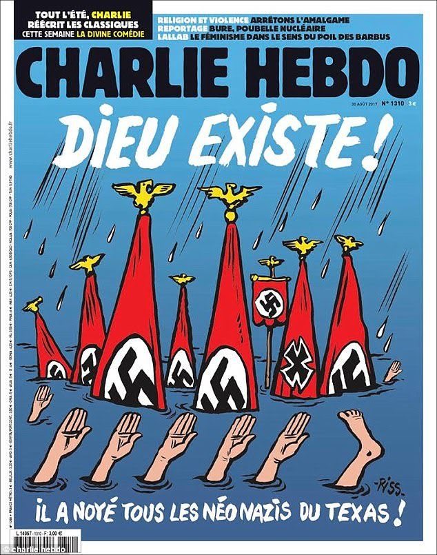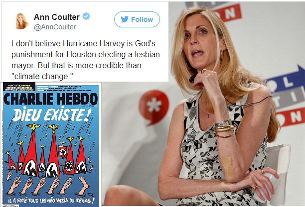 But a few others have wondered why there is so much outrage regarding this particular cover. Some even ask if the satirical cover was more controversial than remarks made by conservative commentator, Ann Coulter which suggested that Hurricane Harvey may well be God’s punishment for Houston’s election of a lesbian mayor.