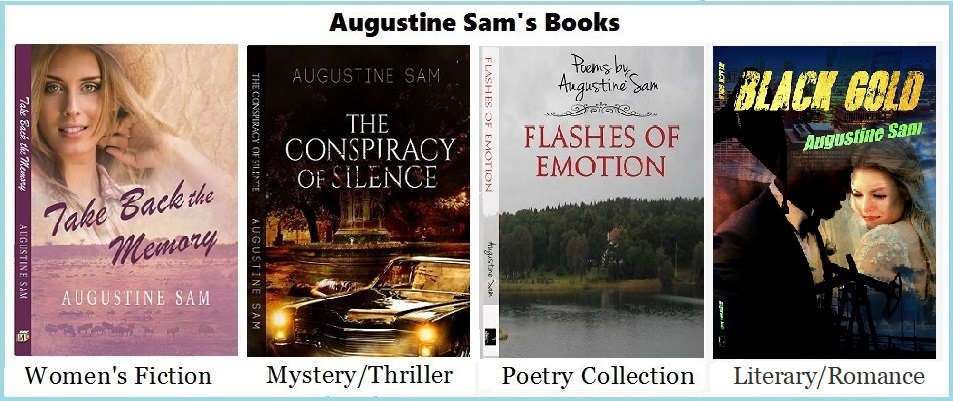 As part of the hop, Augustine Sam is offering:1) A $10 Amazon Gift Card2) Two ebooks: Flashes of Emotion & Black Gold