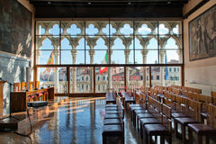 In the lobby of a Moscow hotel across from a Russian Orthodox monastery: