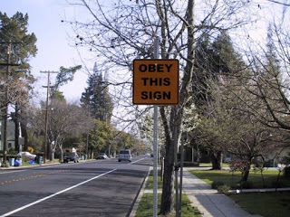 A sign outside a cemetery: PERSONS ARE PROHIBITED FROM PICKING FLOWERS FROM ANY BUT THEIR OWN GRAVES.
