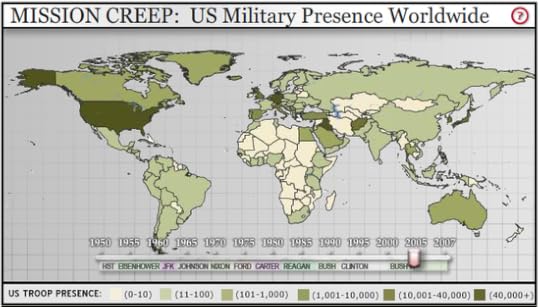 Yes. I know the mantra. This won't solve all our woes. What about entitlements? All granted. But seriously, do you see *anybody* in our ruling classes (beyond the universally agreed upon madmen like Ron Paul, whom we must all hate for 15 minutes), so much as suggesting that we don't need a military presence in many of these countries (unless, of course, we are agreed that we are indeed an Empire)?