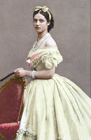 She was born, as all fairy princesses should be, in a palace, as Princess Dagmar of Denmark, second daughter of King Christian IX (the first being the future Queen Alexandra of England, Dagmar's lifelong best friend). The family was relatively poor as far as royal families went, but were very close to each other, and had a lighthearted time together. Dagmar loved to swim and ride, play cards, and collect dogs. In 1864, she became betrothed to the Tsarevich Nicholas of Russia ("Nixa") a handsome and sensitive young man, whom she sincerely loved. Sadly, he died in April of 1865, leaving Dagmar broken-hearted. She was comforted by letters from Nicholas's brother, Alexander, and in June 1866 she accepted his proposal. They were married in a lavish ceremony at the Winter Palace on November 9, after she converted to Orthodoxy and was named Marie Feodorovna. Of the wedding night, her new husband wrote, I took off my slippers and my silver embroidered robe and felt the body of my beloved next to mine... How I felt then, I do not wish to describe here. Afterwards we talked for a long time