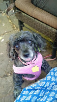 She started the season today, with a walk up Canyon Road and lunch at The Teahouse. Abigail gives them 3 out of 5 Barks. Pluses: a pretty garden that welcomes dogs (there were at least 6 other puppies for her to meet!), an extensive tea menu (dozens of teas, all varieties--we tried an Imperial Grade Sencha, light and delicate, and a nice, smoky Lapsang Souchong, I like it the stronger the better), and tasty food (a simple lunch, a panini and a beet/goat cheese salad). Minuses: a very long wait and slow service, which seems par for the course there. If you have time for a leisurely meal, and just want to sit around with your dog in the shade, it's great. If you're on a quick work lunch, not so much.