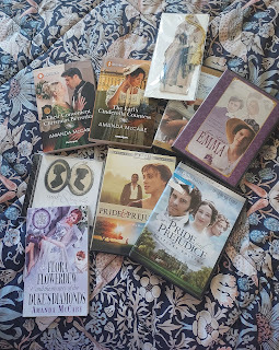 To start off the summer, I have a giveaway for newsletter subscribers! A box of books and movies (Regency-themed). If you're already subscribed, you're automatically entered! If not, you can subscribe here... (I'm very lazy, so the newsletter is very infrequent! It's mostly book news and more giveaways)