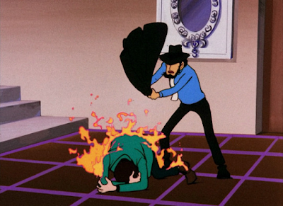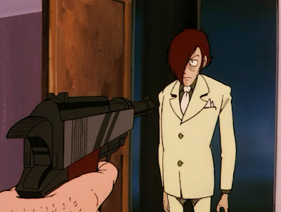 Fujiko's in the midst of her own machinations with Pycal: carefully cultivating the same level of loyalty in him that she already has in Lupin, then sending them off to go toe-to-toe for dominance. Her aim is, of course, Pycal's film (or, more specifically, the formula on it). But she does, however briefly, show a bit of concern and emotional attachment for Lupin. It's when he's out of earshot, but it's there. And boy, will it stay out of earshot for a long time.