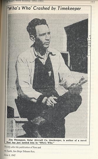 He was born James Myers Thompson in 1906 in Anadarko, Oklahoma, where his father, James Sherman Thompson, was the county sheriff. The following year, his father fled to Mexico and parts unknown for two and a half years after being implicated in a murky scandal involving financial improprieties. The family moved around Oklahoma and Nebraska for years before relocating to Fort Worth in 1919. For the next four years the senior Thompson dabbled in numerous schemes and ventures, including drilling wildcat oil wells in West Texas, but by 1923 the family was destitute. His son chronicled this chapter of his life in his first book, Now and on Earth: “Pop went broke and his was the irremediable brokeness of a man past fifty who has never worked for other people.”