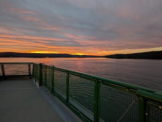 sunrise on the ferryI had to head over to one of the other islands for an annual doctor exam, but the inter-island ferry commute and waiting around allowed me lots of time to read Manslaughter Park! Reading also helped distract me from my irrational doctor visit anxiety. I’m now about two thirds through the book, and I think I know whodunit. I’ve had a su...