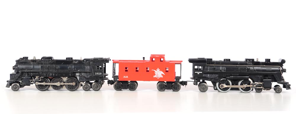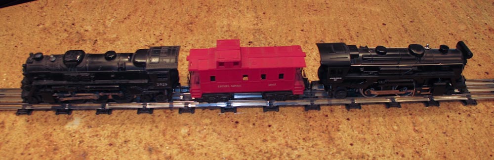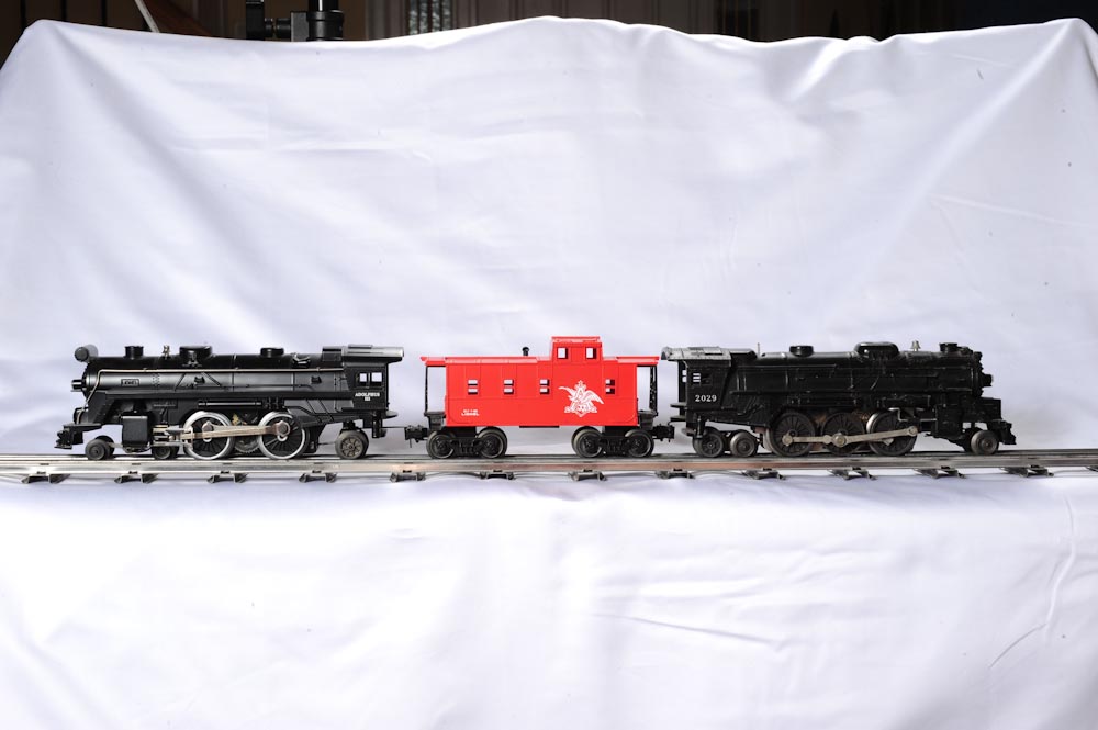 This will be simple, I thought. I'll set two of my engines and a caboose on the table and photograph them. That was the plan, but then things got complicated. The first problem was the trains themselves. I've got over one hundred Lionel engines and cars of various shapes and colors. However, I could not find a single matching pair of steam locomotives.