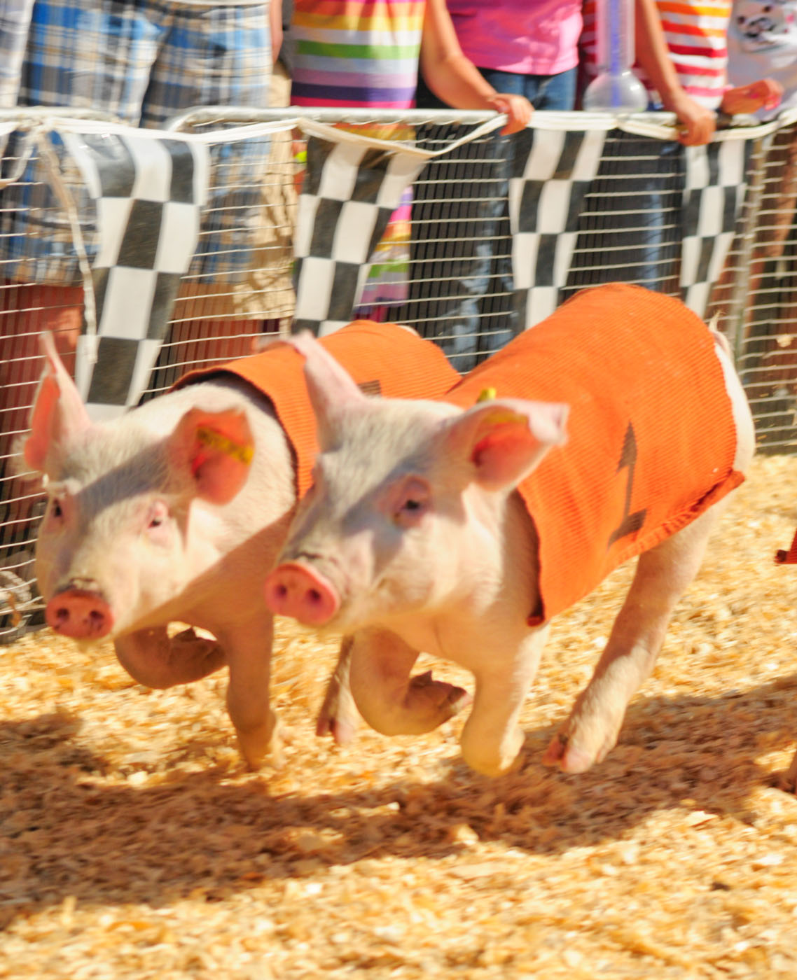 This is what it looks like. Two pigs, one track. Eight legs in the air. Near forty miles an hour, some say. This is just below liftoff speed.
