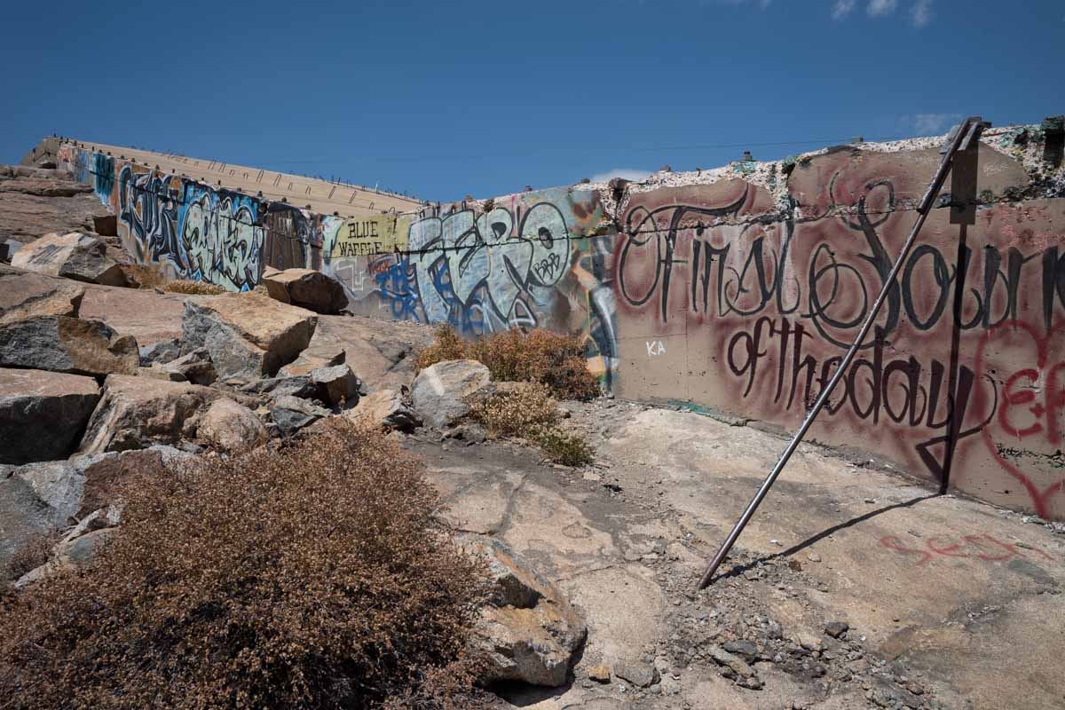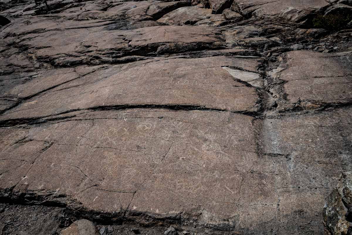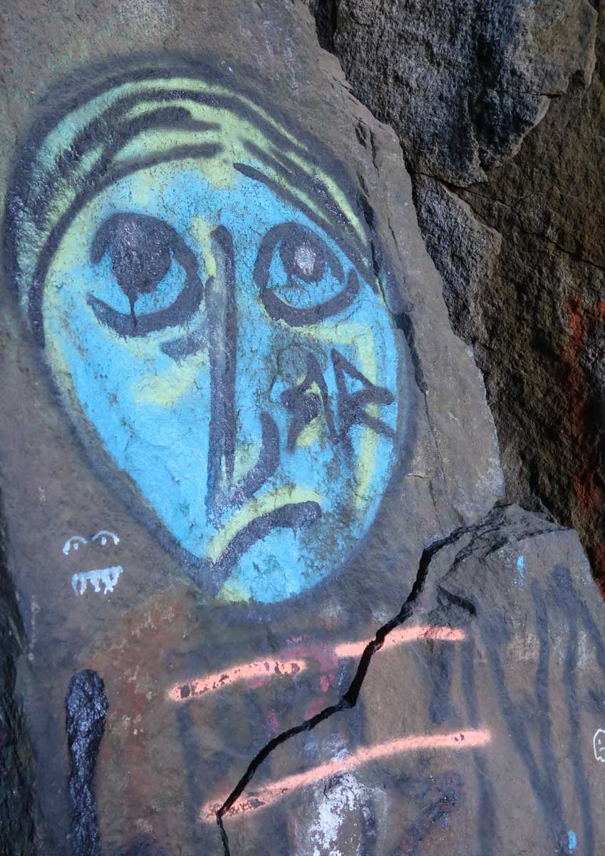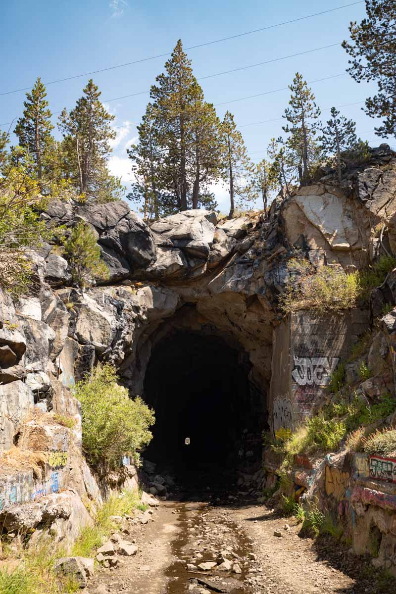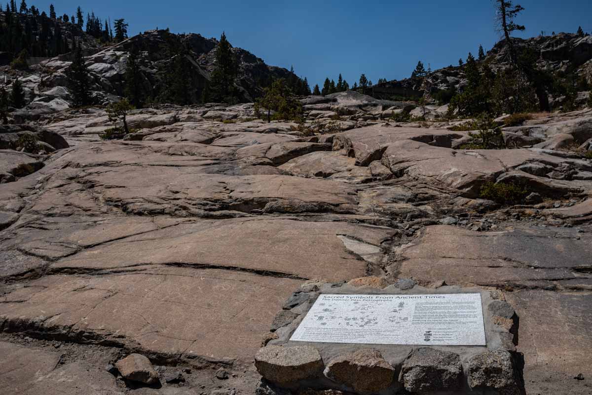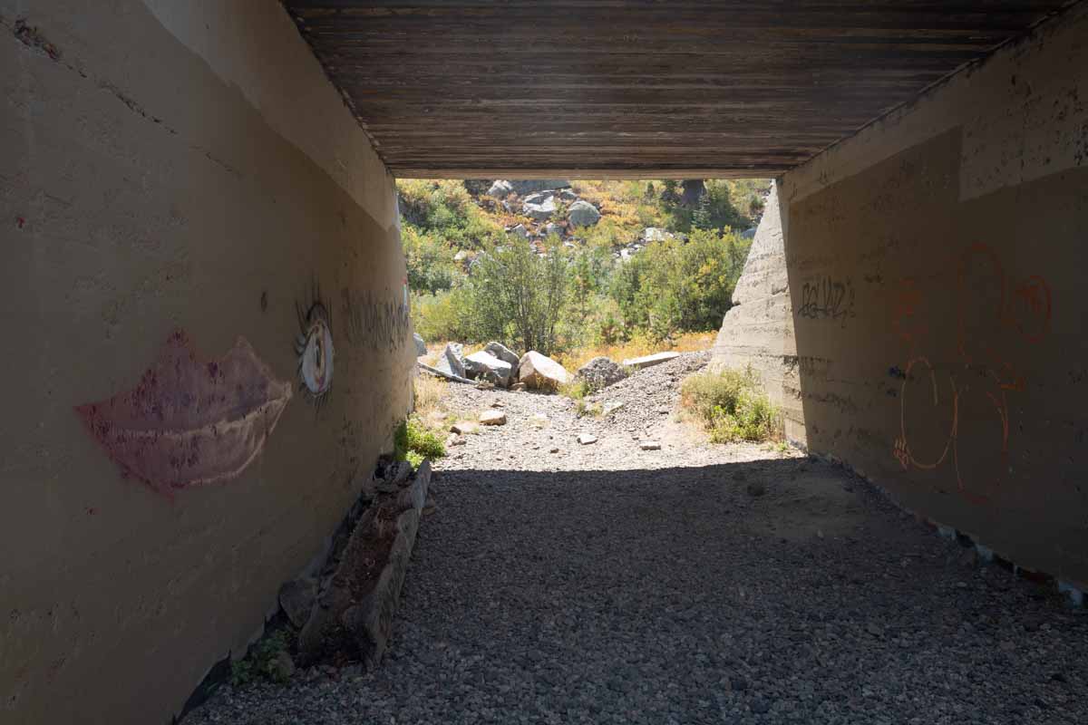 If you want to see this for yourself take the Donner Pass Road west from Truckee. There are exits for the road on I-80. Climb to the overlook bridge parking area and walk across the road and downhill a few hundred yards to the trail up to the petroglyphs. From there the trail goes up to the Chinese walls between two of the tunnels. Tunnel six will be on your right, to the west.