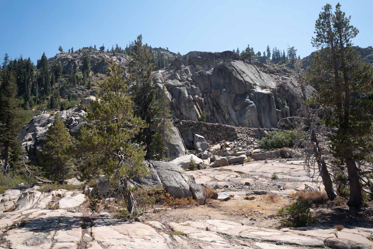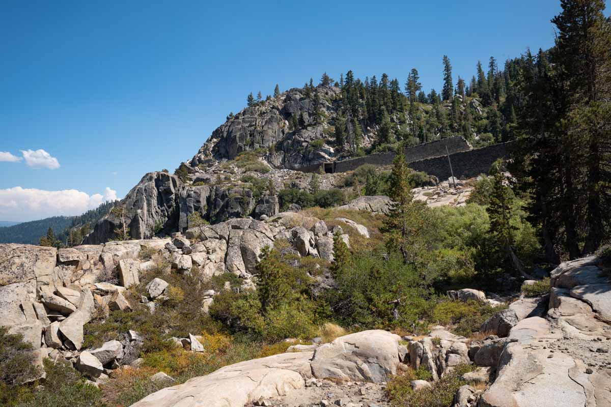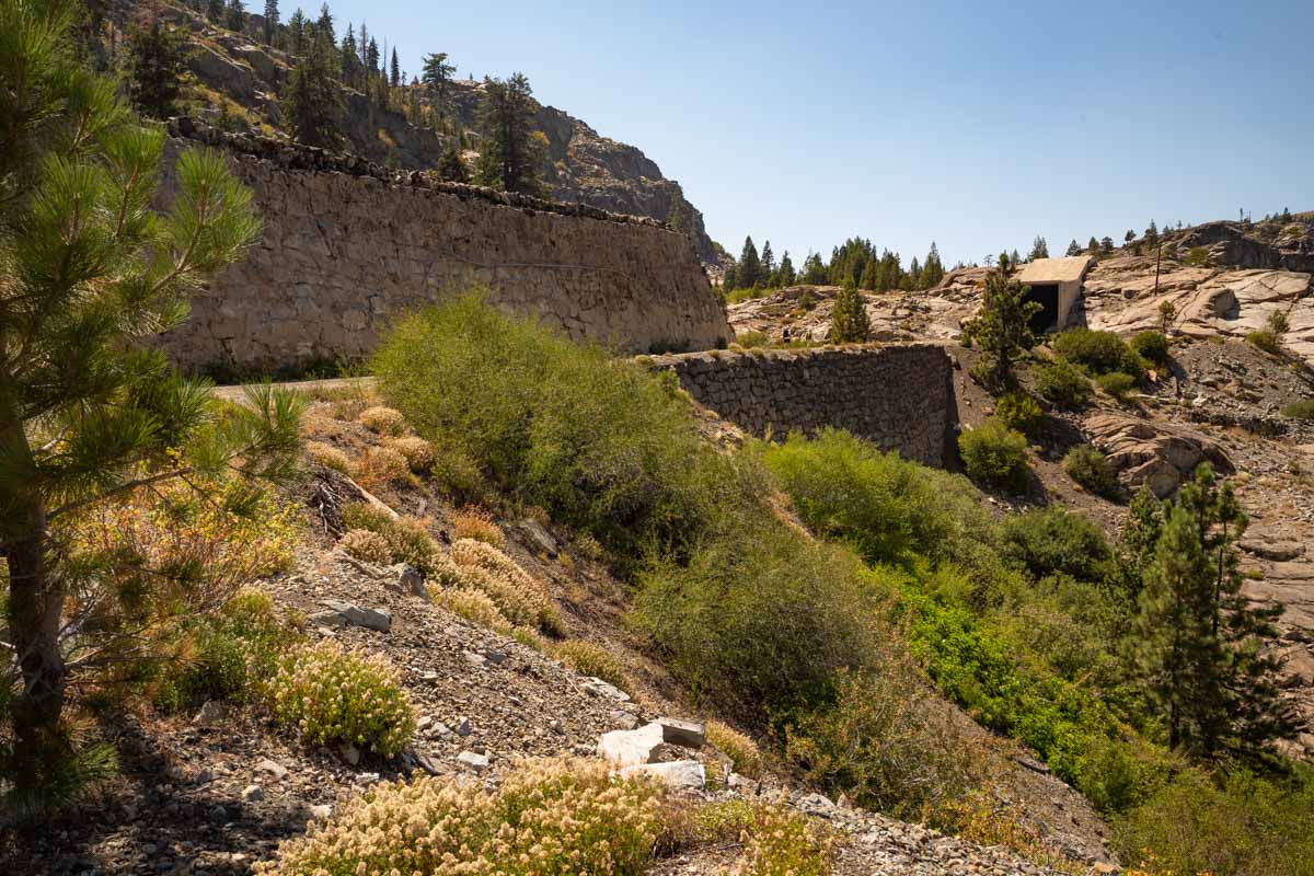 In this next two images you can see a smaller rock wall. This is a built up section of the construction service road, which later became the Lincoln Highway for early motorcars.