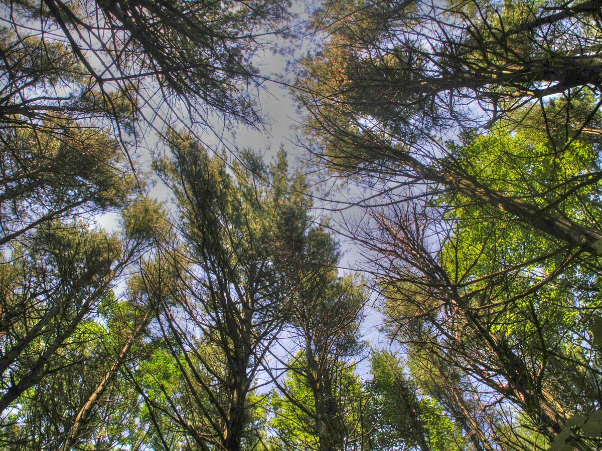 This view looks up at the Chinese walls. The trees give a sense of scale