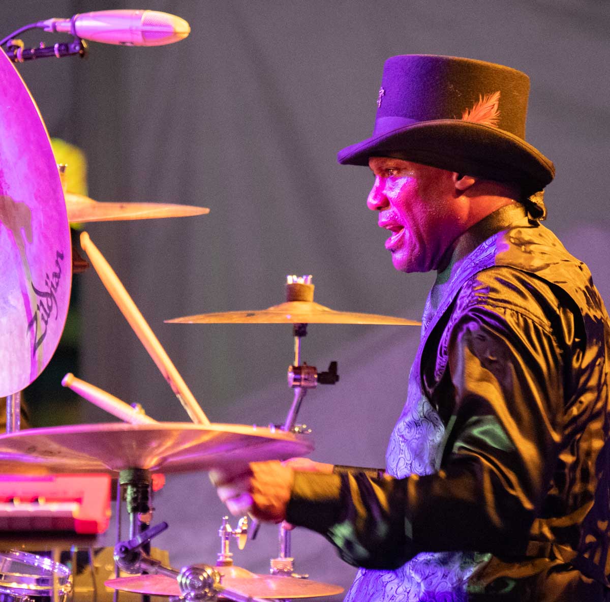 This is an example of proximity and what it means. For the photo below I stood three feet from funk drummer Jellybean Johnson, and shot this image from a perspective few people see firsthand. Yet it's this image that people say looks real to them. That shows how our imagination often means more to memory than what we actually saw, when it comes to emotional things like music.