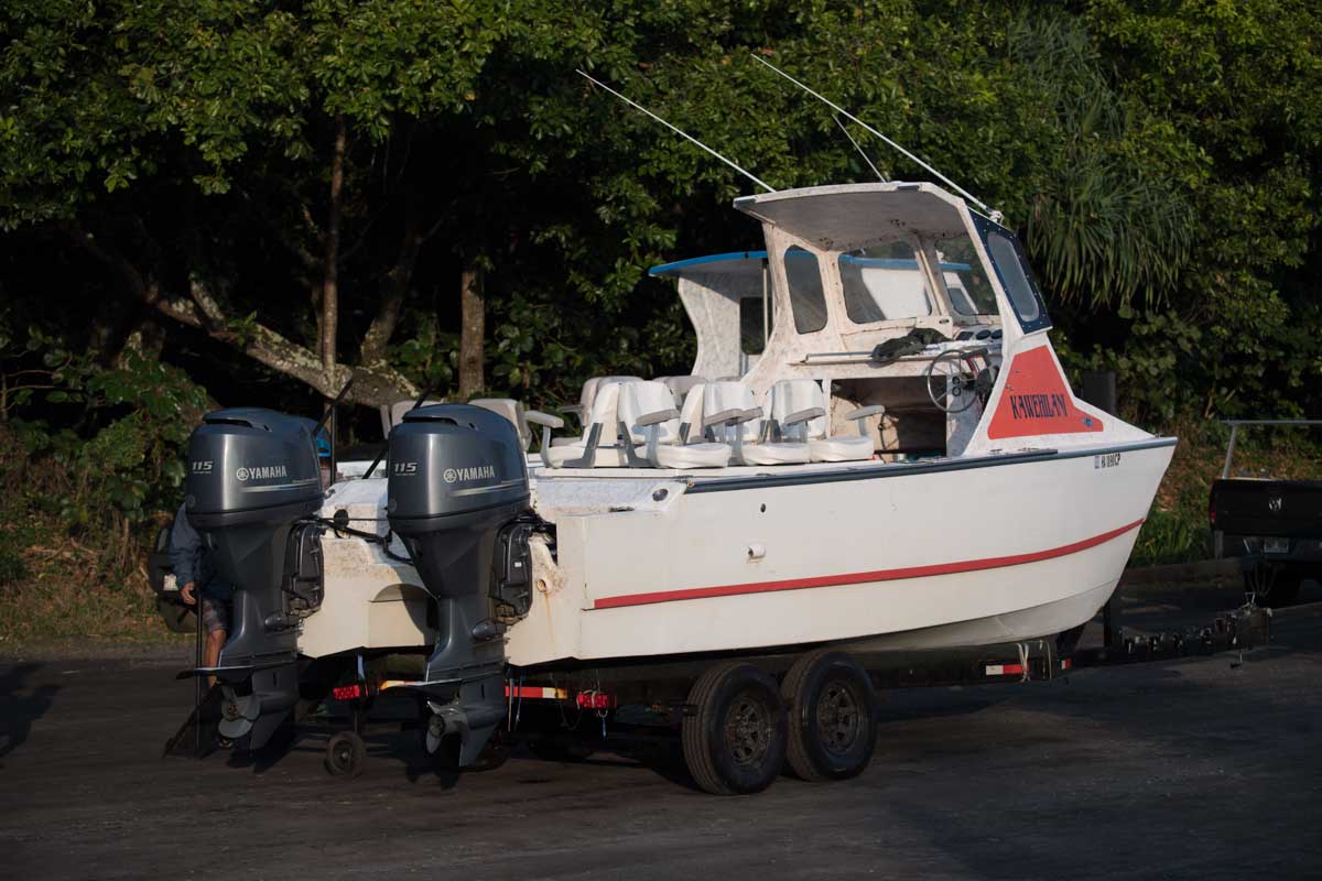 Tours run from pre-dawn to after dusk, weather permitting. The launch site is about 14 miles from the lava flow and the trip out and back can be rough. Luckily this trip wasn’t – it was as smooth as an ocean passage can be. Our boat had a captain and crewman, and seats for six passengers. It was 22 feet long and powered by two outboards. Everyone climbed aboard while the boat was on its trailer and we launched fully loaded as there are no docks to tie up to at Isaac Hale Beach.