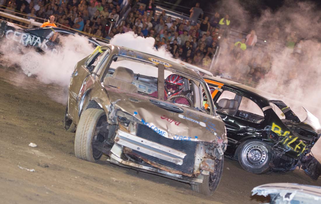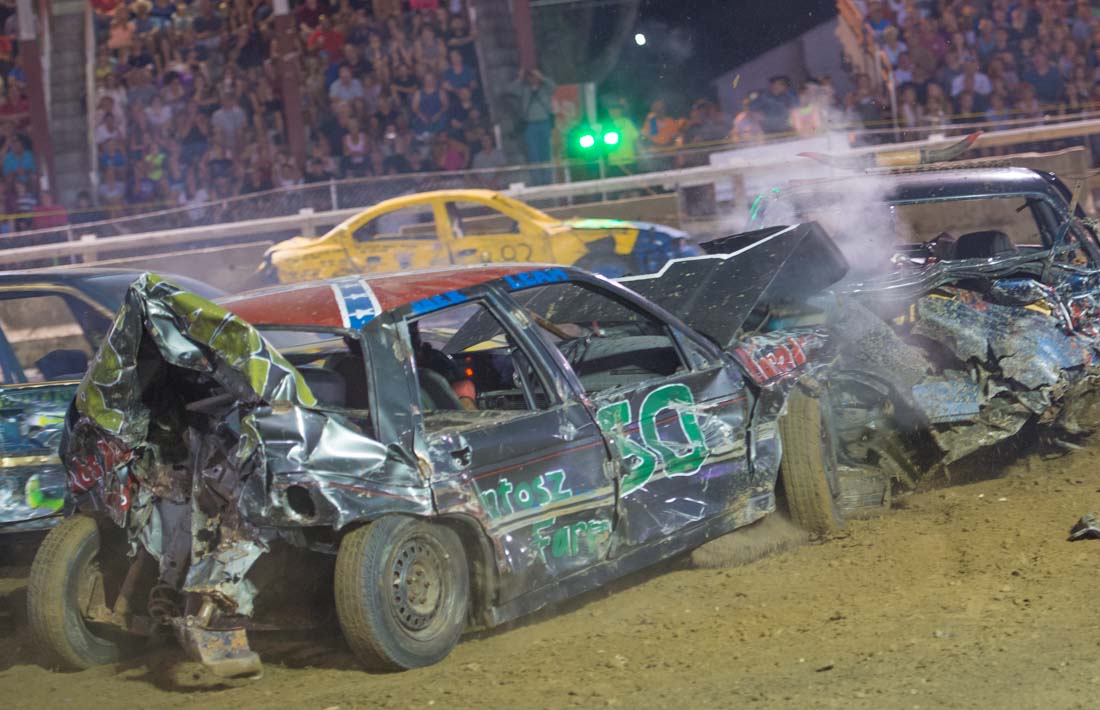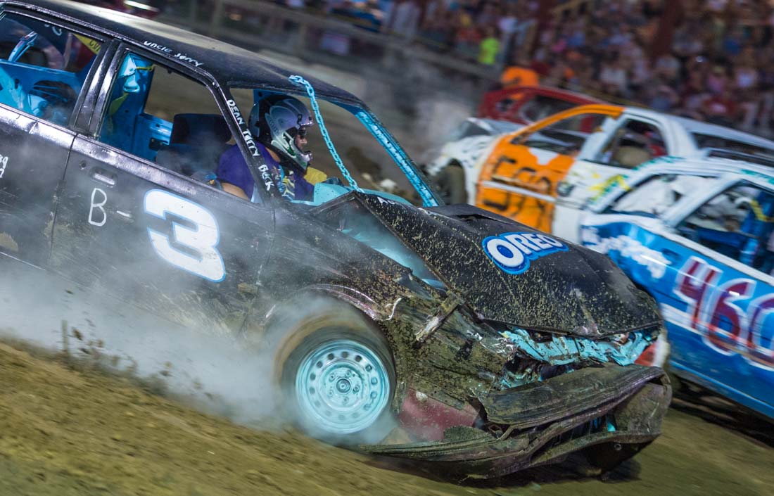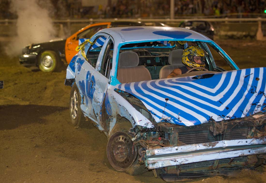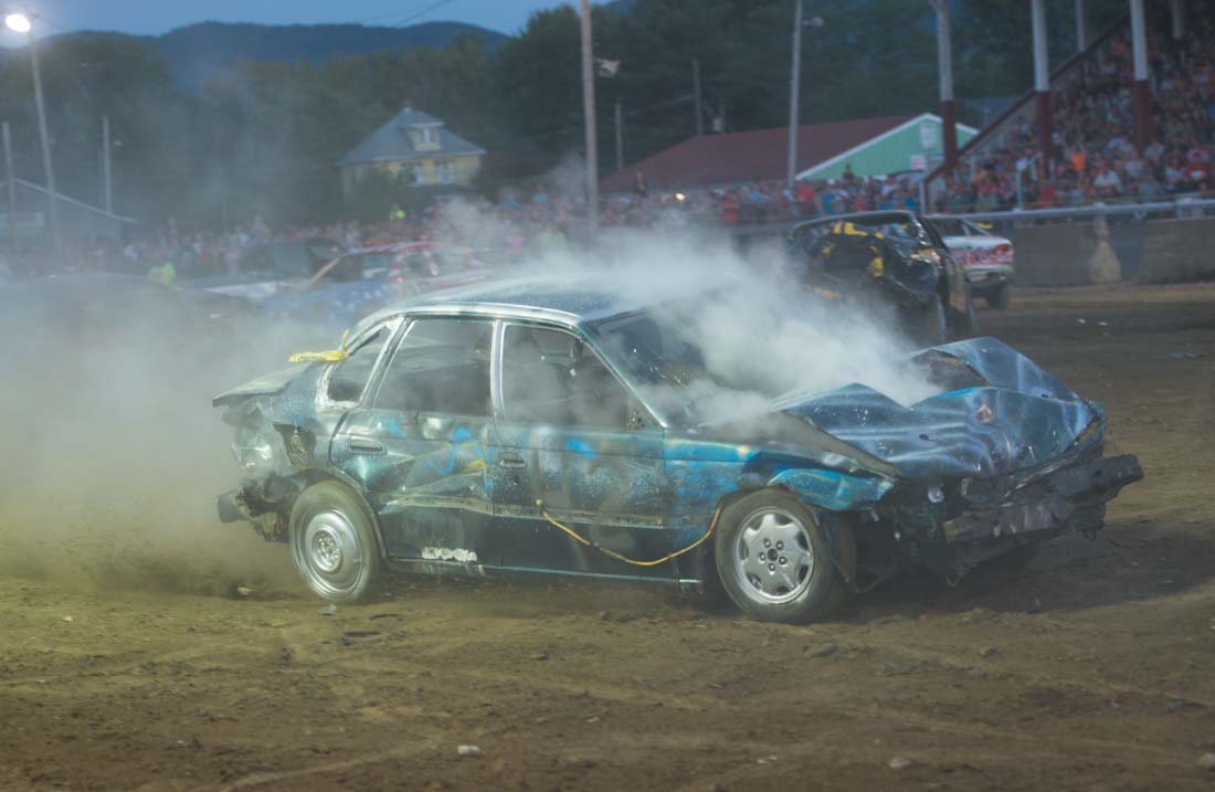 Demolition Derby. It’s the closest you can get to blood sport in the politically correct northeast, and it’s it right here at home. Kill-crazed drivers swarm the field in battered wrecks, bent on annihilation of their fellows. The last car rolling wins. Local farmers and merchants encourage their sons and daughters to compete, for family honor. They find themselves up against the spawn of criminals and outlaws, and the nature of the victor is always in doubt.