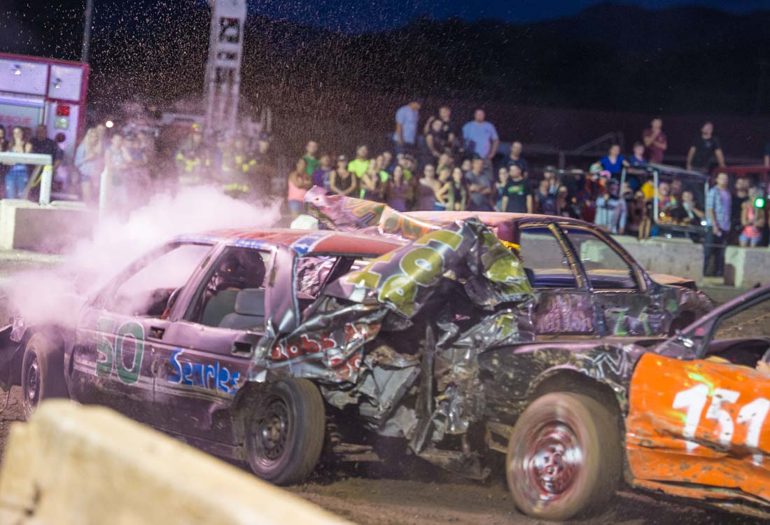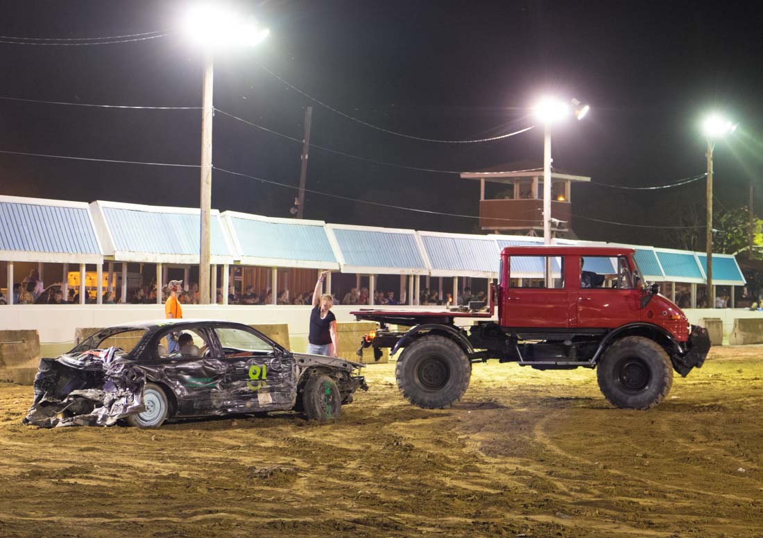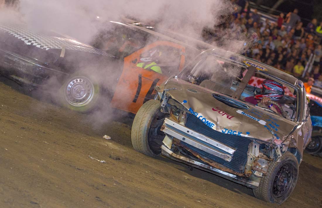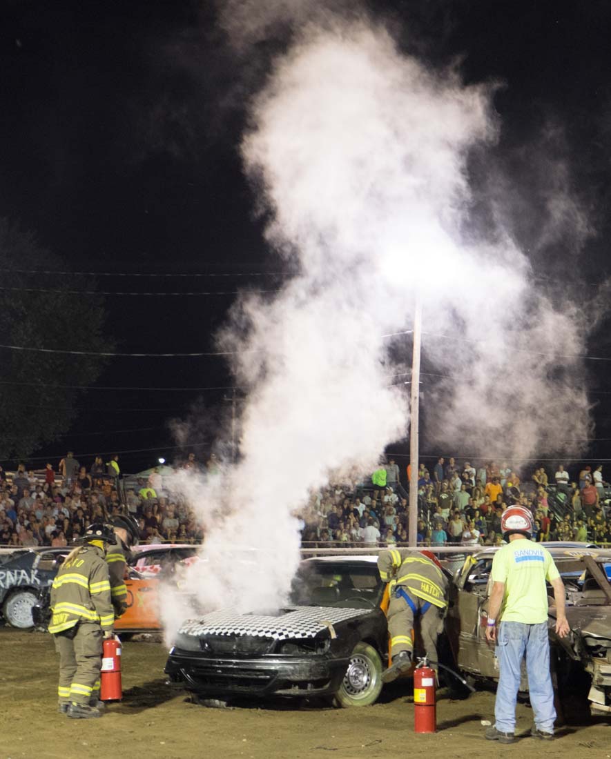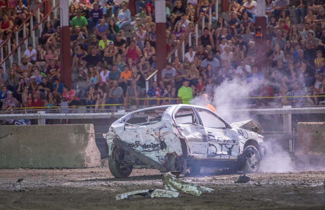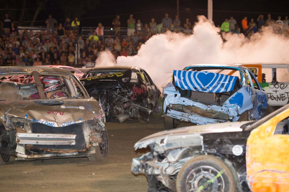 As day turns to dusk the carnage intensifies. Drivers are shrouded in smoke and fog of their own making and the track is marked with the blood of the four-wheeled beasts. Firemen stand ready, but mostly the competitors work things out among themselves.